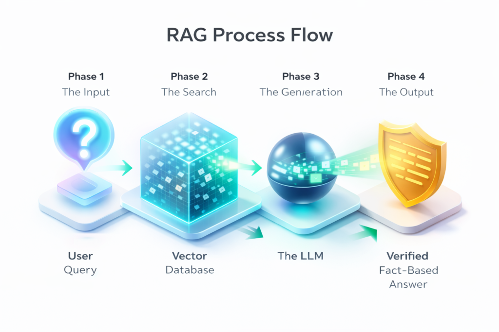 RAG is the most popular way to create a custom experience. Instead of changing the model itself, you provide it with a “library” of your company’s documents. When a user asks a question, the system searches your private library and hands the relevant facts to the AI to summarize.