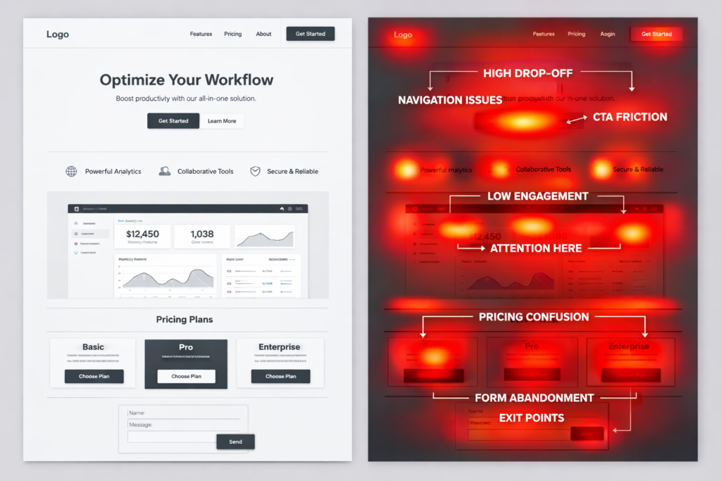This is a conversion issue, not a traffic shortage. Effective website conversion rate optimization starts with identifying why users visit and leave without taking action. When the funnel leaks, leads evaporate, sales stall, and ad spend becomes wasteful.